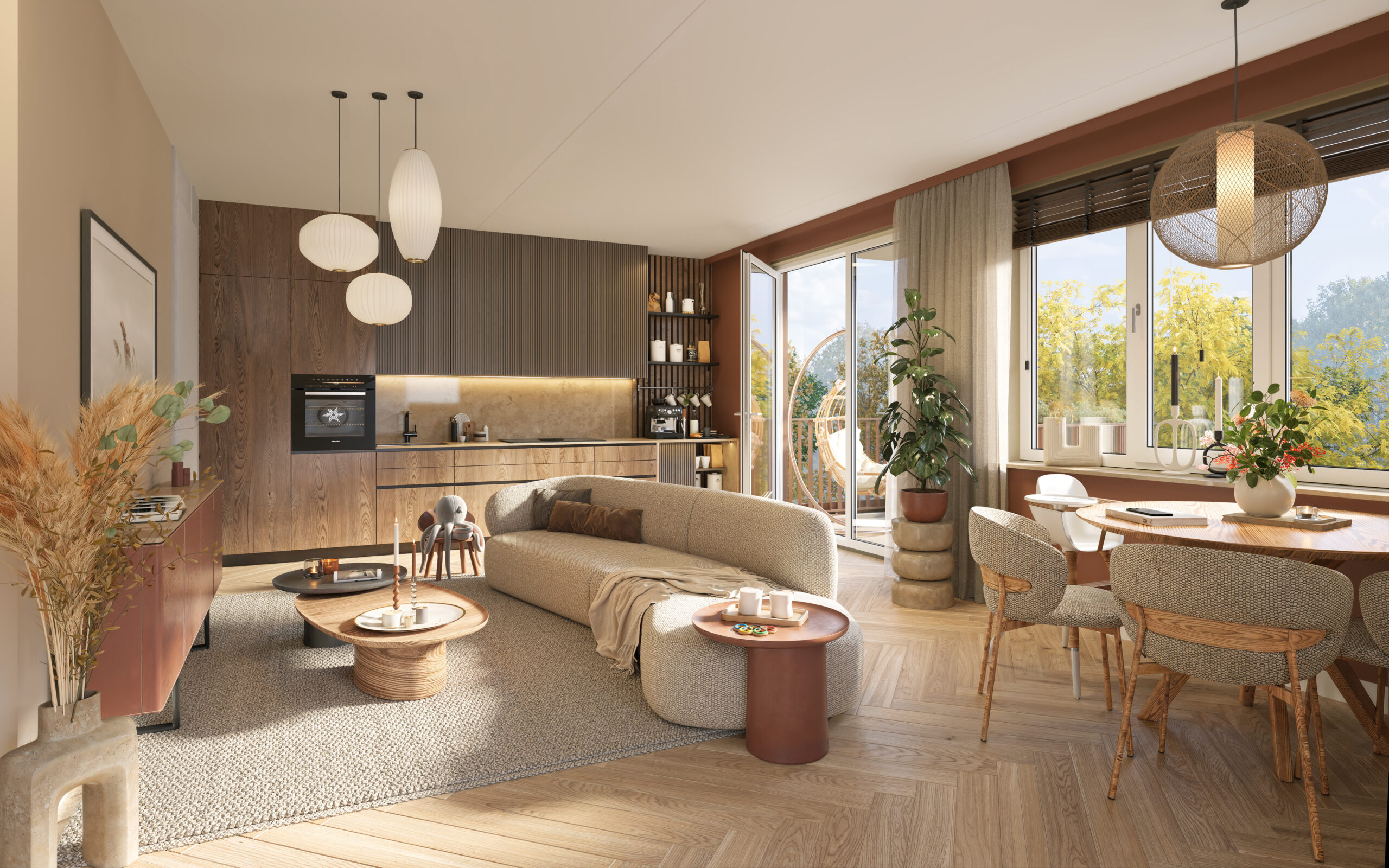 Jouw nieuwe appartement leveren wij op met een keuken. Hoe deze keuken eruitziet, lees je terug in de keukenfolder en die vind je onder downloads van jouw appartement.